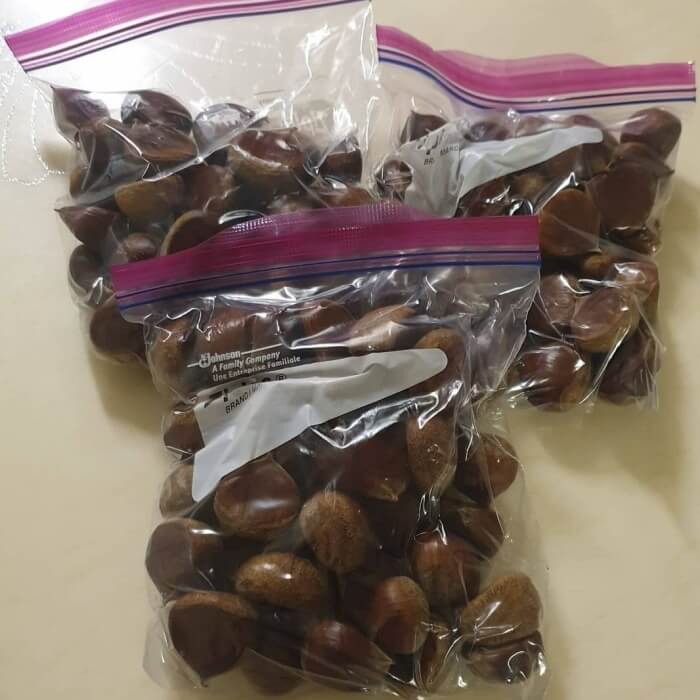 밤 보관 법은 구매를 한 밤은 지퍼백에 한 움큼씩 담아주셔서 냉동으로 보관해주시는 것이 제일 좋습니다.